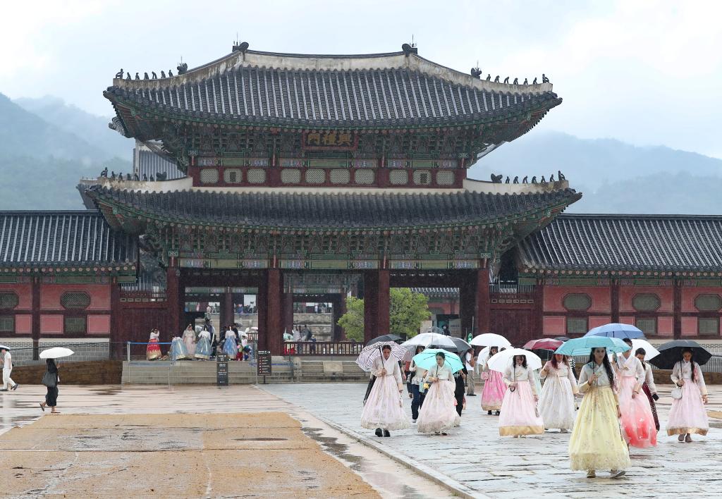 8月6日,游客在韓國首爾景福宮參觀。 新華社記者 姚琪琳 攝