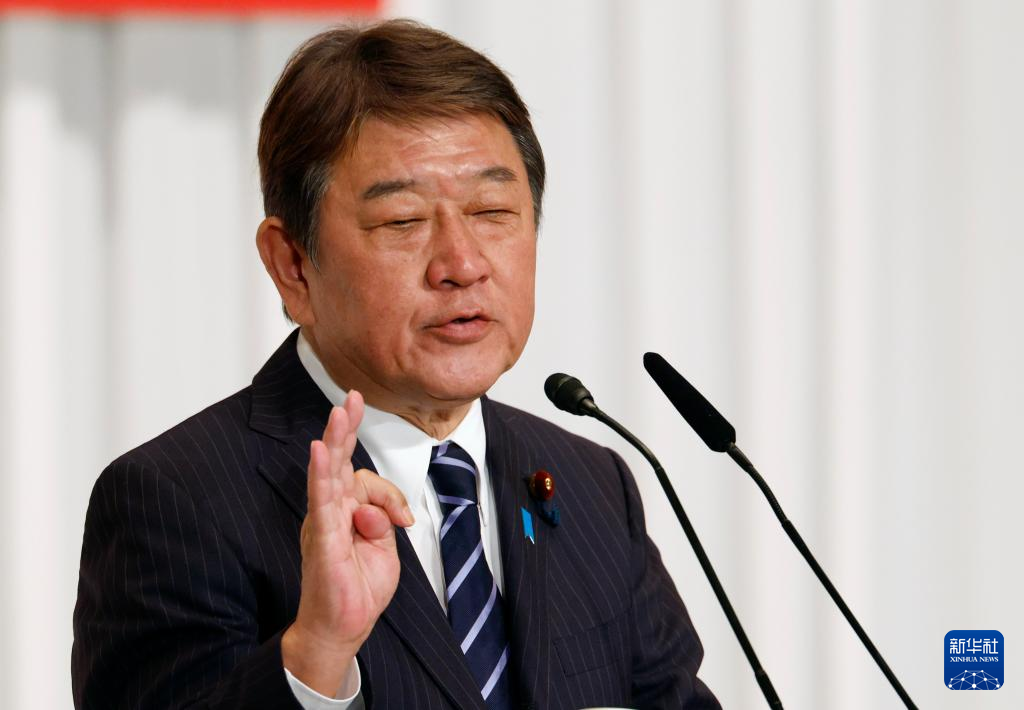 9月22日,在日本東京,日本自民黨總裁選舉候選人、自民黨前干事長茂木敏充在自民黨總裁選舉政見發表演講會上發言。新華社發(Pool圖片,弗蘭克·羅比雄攝)