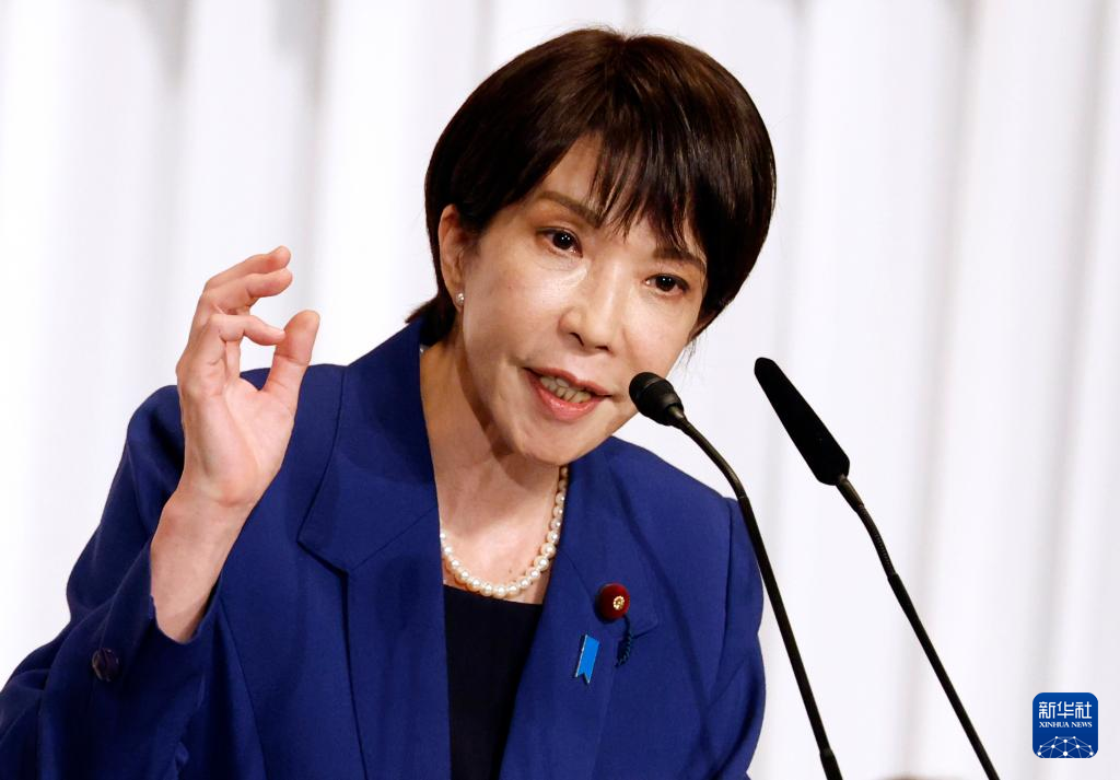 9月22日,在日本東京,日本自民黨總裁選舉候選人、前經濟安全保障擔當大臣高市早苗在自民黨總裁選舉政見發表演講會上發言。新華社發(Pool圖片,弗蘭克·羅比雄攝)