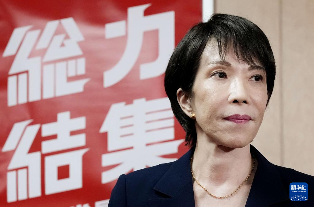 10月10日,在日本東京,日本自民黨總裁高市早苗會見記者。新華社/共同社