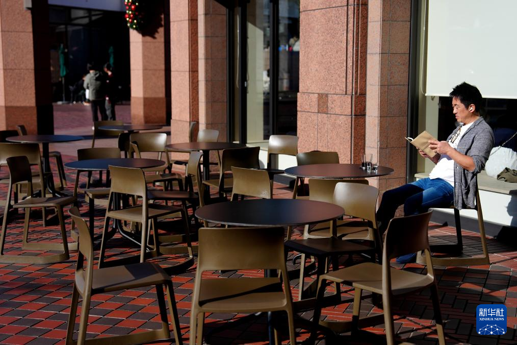 11月17日,一名男子在日本東京的一家咖啡店外休憩。