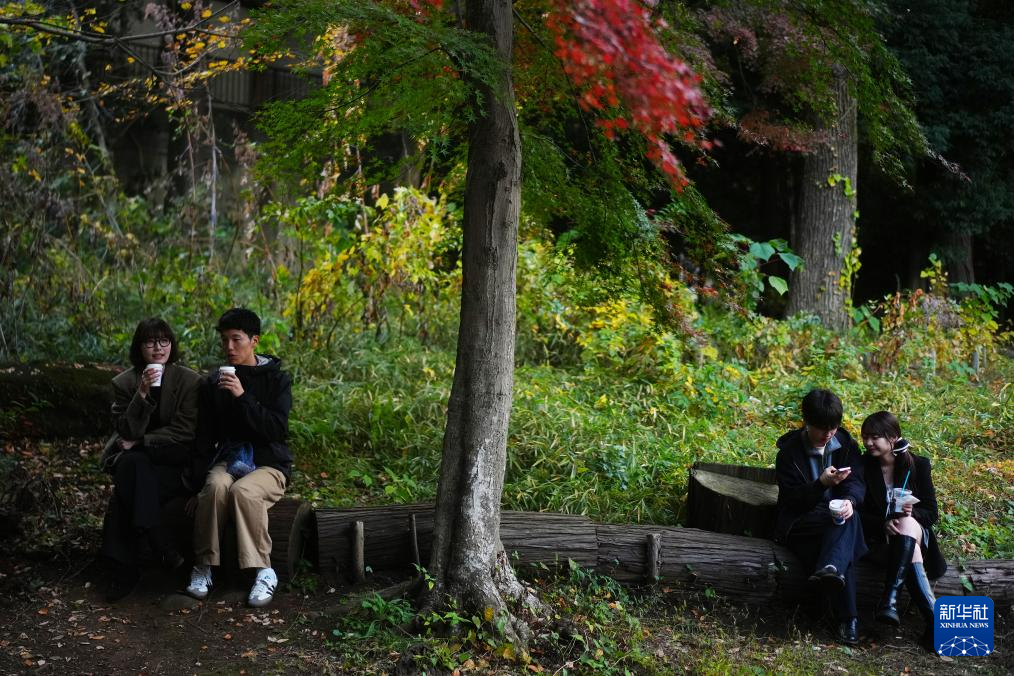 11月16日,游客在日本東京的一處公園內休憩。