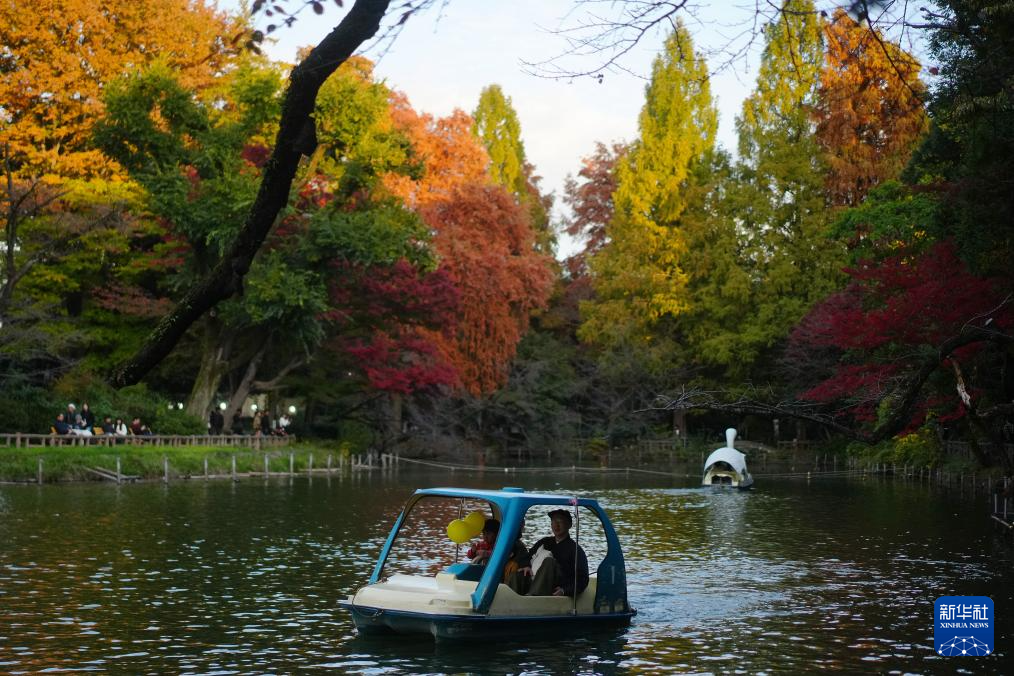11月16日,游客在日本東京的一處公園內游覽。