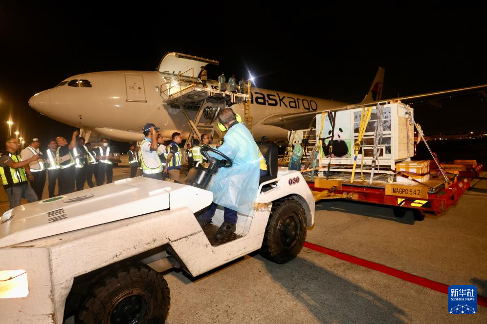 新華社吉隆坡11月18日電(記者王嘉偉 程一恒)大熊貓“辰星”“曉月”18日晚搭乘專機抵達馬來西亞首都吉隆坡。這是繼今年5月大熊貓“福娃”“鳳儀”回國后,又一對大熊貓前往馬來西亞國家動物園旅居,開啟新一輪為期10年的中馬大熊貓保護合作研究。