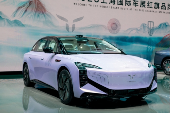 在綠色、低碳、創新理念的驅動下,紅旗品牌確定了新能源汽車全球戰略,以全新的理念、標識、設計語言和前沿技術架構,全速、全域推動電動化進程。紅旗新能源子品牌的標識是“旗妙雙翼”,寓意“雛鷹展翅、生命激發”,宣示著紅旗新能源關切自然、珍愛生命,聚焦新能源、聚力綠色智慧出行的戰略理念。紅旗新能源子品牌的兩款全新車型紅旗E001與紅旗E202在車展上亮相。