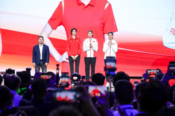 女排世界冠軍趙蕊蕊、魏秋月、顏妮亮相發布會現場