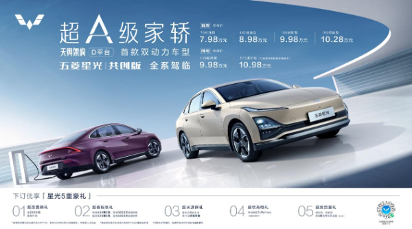 作為天輿架構D平臺首款超A級雙動力車型,五菱星光插混率先吹響號角,上市至今銷量突破52000輛,躋身15萬內插電式混動轎車榜前3??傆行枪庠诼飞?!五菱致力為用戶提供極致“質價比”的產品,基于強有力的架構平臺和技術儲備,伴隨共創版雙車上市,五菱星光正式完成了雙動力產品布局,帶給用戶從城市到遠途出行的多樣化選擇。