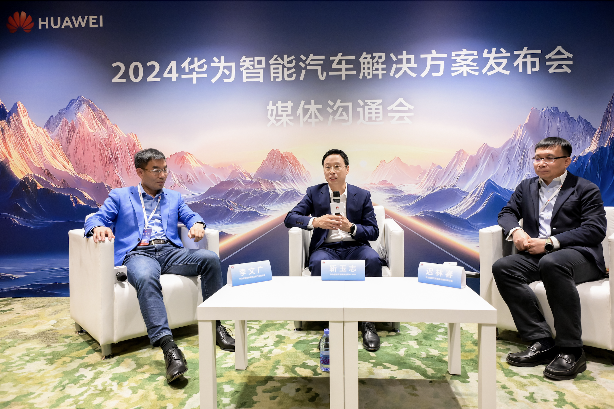 靳玉志、華為智能汽車解決方案BU副總裁遲林春、華為智能駕駛解決方案產品線總裁李文廣參與了發布會后的訪談環節,并就行業定位、未來期許以及戰略目標等問題進行了深入溝通。