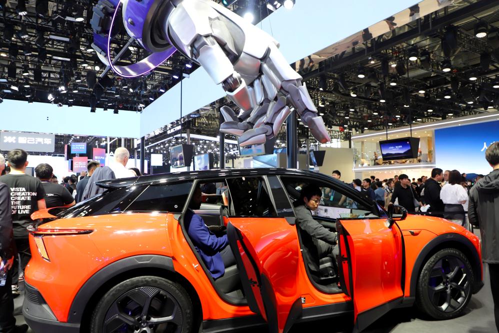 圖為2024北京車展小鵬展臺展出的全新陸空一體式飛行汽車。新華社記者張曉潔 攝