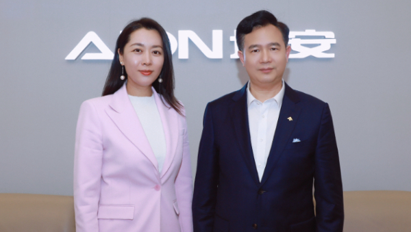 廣汽埃安總經理古惠南(圖右)、新華網汽車產業中心總經理梁懿(圖左)