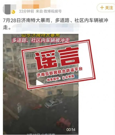 濟南互聯網聯合辟謠平臺特別提醒,近期多地出現強降雨天氣,個別網民為博取關注,炒作舊聞。網民朋友要做好分辨識別,做到不信謠、不造謠、不傳謠。