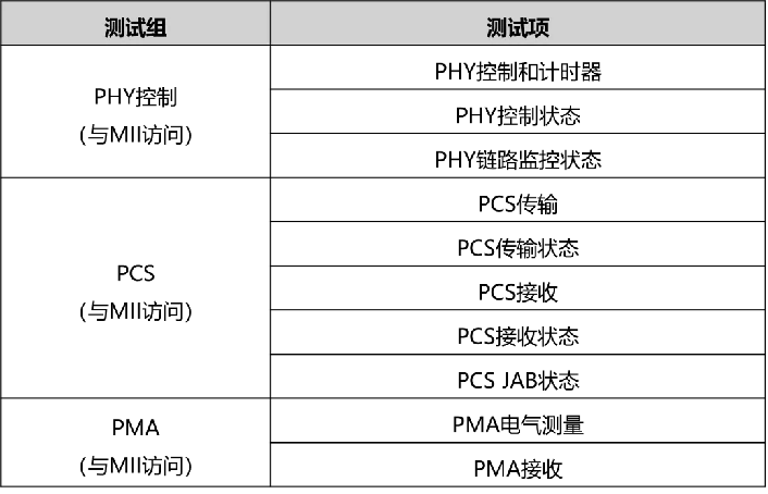 依據ISO21111-6標準提供的100Mbit/s傳輸速率下電氣物理層實體的測試規程,技術人員可對PHY控制、PCS以及PMA三項內容進行一致性測試工作,確保物理層實體可以與其他車載設備正常連接,實現數據的穩定傳輸。