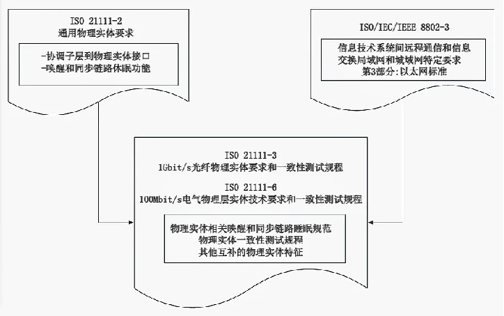 ISO21111-6標準規定了100Mbit/s傳輸速率下物理層實體高級功能(例如喚醒和睡眠功能)的技術要求,為以太網物理層實體的功能設計提供了具體的標準規范。針對喚醒和睡眠功能,此標準規定了喚醒與睡眠功能的服務原語和接口、供電時序狀態和命令定義(例如用于請求斷電、通過不活躍鏈路和活躍鏈路發送喚醒信號的三種命令)。