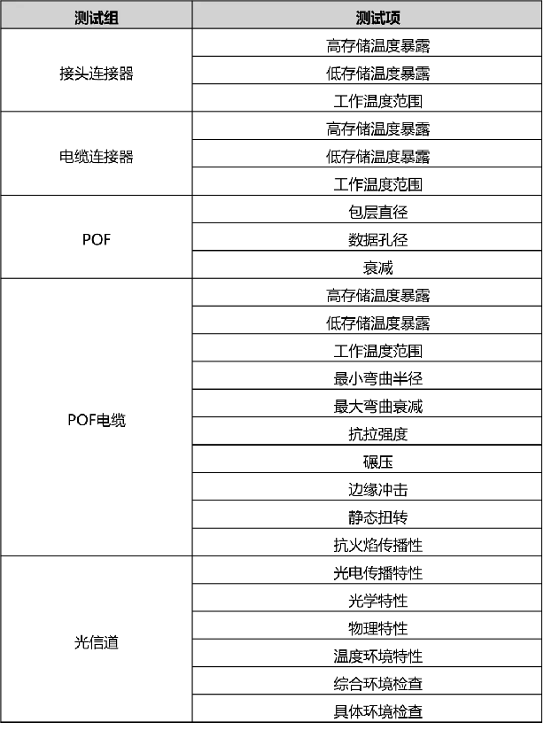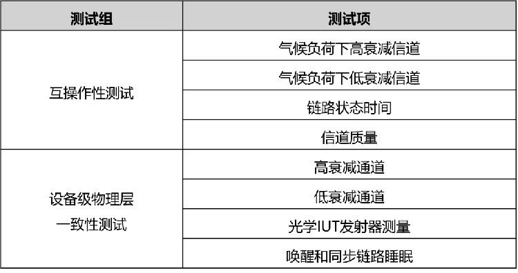 ISO21111-5標準規定了1Gbit/s傳輸速率下光纖物理層系統的四項關鍵技術要求(例如塑料光纖(GEPOF)的鏈路狀態、連接質量、信道質量以及在氣候負荷下的通信可靠性)。面向技術人員提供了氣候負荷下高低衰減信道、鏈路狀態時間和信道質量的互操作性測試規程,以及涉及高低衰減通道、光學IUT發射器測量與喚醒和同步鏈路睡眠的一致性測試規程,旨在保障車載以太網系統的性能和穩定性。
