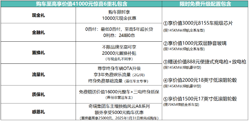 風云A8L共推出5款車型,1.5L-DHT 70KM標準型10.99萬元、1.5L-DHT 70KM舒適型11.99萬元、1.5TGDI-DHT 145KM標準型12.99萬元、1.5TGDI-DHT145KM舒適型13.99萬元、1.5TGDI-DHT 145KM豪華型14.99萬元,并帶來購車至高享價值41000元的驚喜6重禮遇,奇瑞置換補貼價低至9.49萬元起(不含國補)。