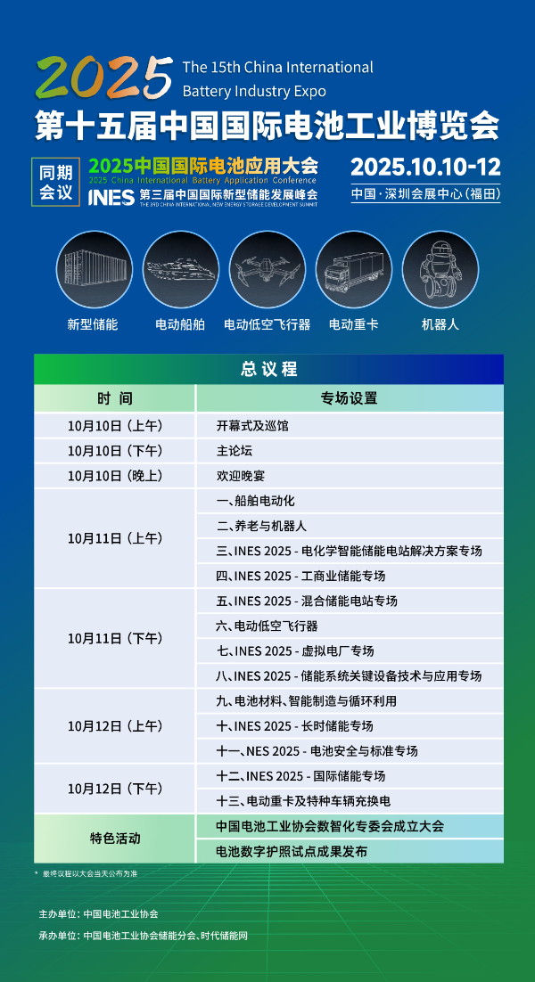 2025年10月10-12日,以“動能無界、芯賦未來”為主題的2025中國國際電池應用大會暨第三屆中國國際新型儲能發展峰會(INES2025)將在深圳福田會展中心舉行。
