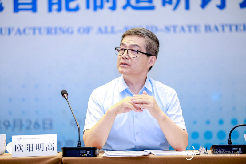 9月26日,由中國全固態電池產學研協同創新平臺主辦的“全固態電池智能制造研討會”在北京清華大學召開。來自電池、整車、工藝裝備企業以及高校研究機構的百余位專業人士出席研討會,圍繞全固態電池的全鏈條制造關鍵問題開展深入交流與探討,中國全固態電池產學研協同創新平臺理事長歐陽明高作總結發言。