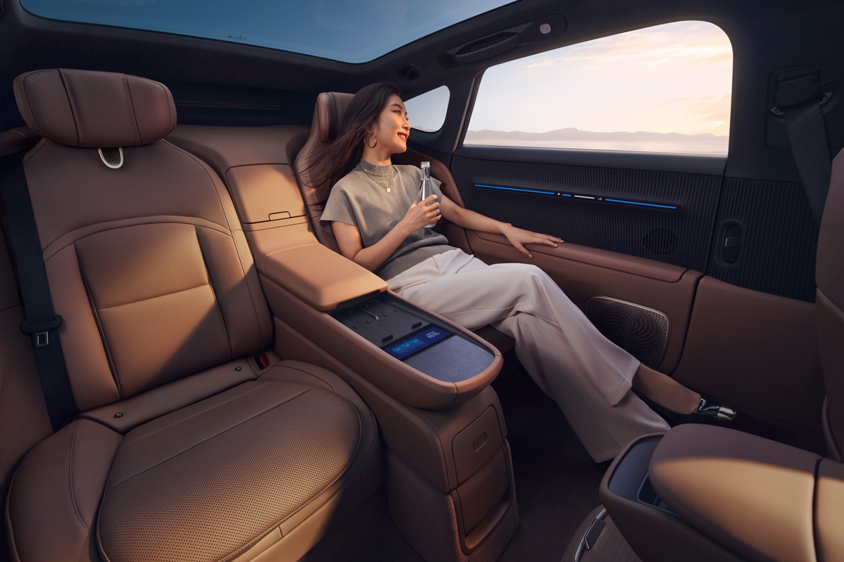 此外,新車還提供了VIP四座尊享包、納米水離子健康氧顏艙等配置,將豪華推向新高度。后排座椅支持加熱、通風、8點位按摩與電動調節,配合車載智能冷暖箱與50W無線快充,無論是商務接待還是家庭出行,皆能盡享從容。納米水離子健康氧顏艙能在凈化空氣的同時,實現保濕護膚、柔順秀發的貼心養護。