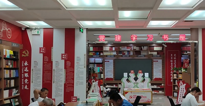 “學習強國”線下體驗空間主題黨建學習書屋位于新華書店二樓,包含黨建讀物、紅色經典、行政參考、政治、國際政治等類型書籍,書屋藏書種類規模超過1000個品種,豐富多樣的閱讀內容提供給不同需求的讀者。