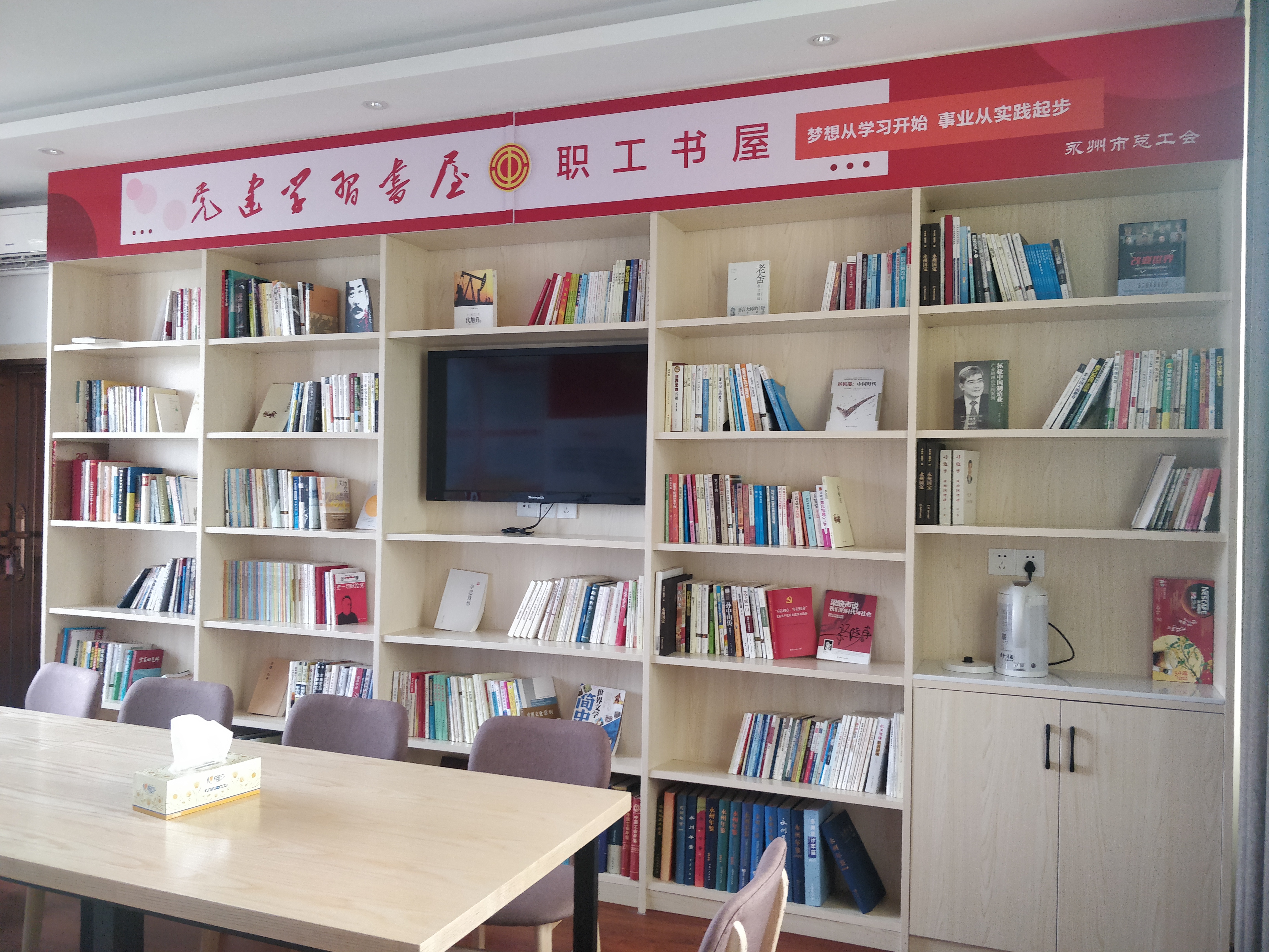 永州市總工會是市委領導下的由職工自愿結合的工人階級的群眾組織,設辦公室、宣教部、組織部、勞動和經濟服務部、權益保障部、女職工部、財務資產部、經審辦等部門,在編干部職工29人,其中黨員25人,占比86.2%。書屋面積為40平方米,藏書1600余冊,擁有電子閱讀設備1臺。2020年9月22-23日,永州市總工會在江永縣女書園舉辦“瀟湘君子女·女書康樂行”素質健康主題讀書分享會,通過講述、朗誦、說唱、情景劇等多種藝術形式進行展示并推薦圖書,分享讀書心得體會。