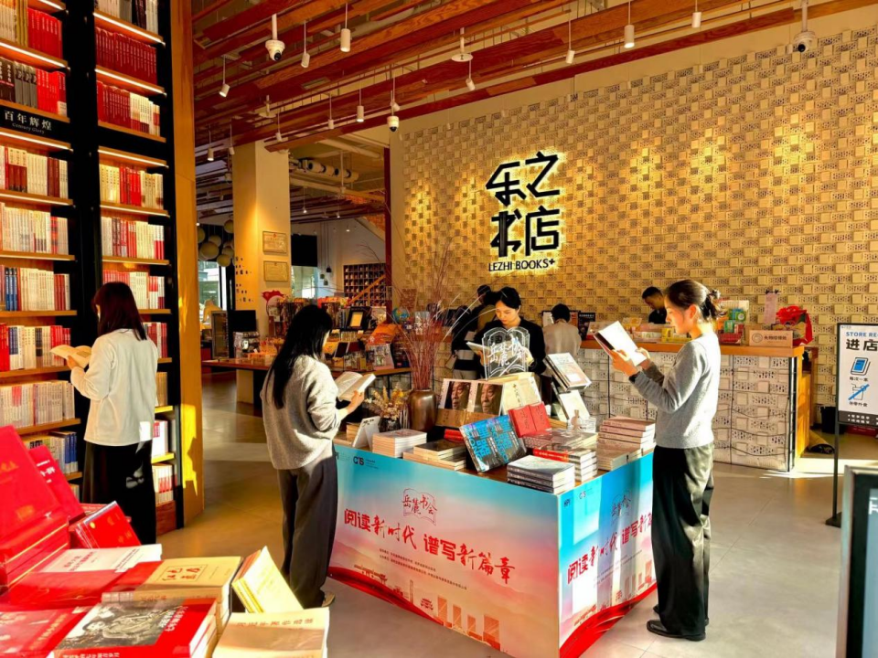 樂之書店·雨花店展臺上不僅陳列著由湖南人民出版社出版的《大國制造》《治大國若烹小鮮:引領新時代的36個妙喻》《我們湖南這十年》等湘版好書,還陳列著《太白金星有點煩》《我在北京送快遞》等當下熱門的口碑新作,吸引著大小讀者駐足翻閱。