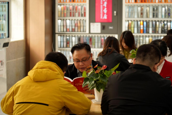為更好教育、管理、服務黨員,建設學習型黨組織,瀏陽市自然資源局于2020年啟動黨建學習書屋建設。書屋遵循因地制宜和便利原則,設置在局一樓大廳,投入30余萬,占地面積120余平米、藏書6000余冊。書屋開放時間為8:20—18:00,設有兩臺自助借閱機和1臺電子借閱機,干部職工可自助完成查詢、借閱和歸還書籍。黨建學習書屋采購書籍類型涵蓋了重要講話讀本、領導人著作、黨史、國史、黨內政策法規、自然資源業務、先進人物、歷史文化等領域,除書籍借閱外,在黨支部推進“三會一課”、“五化建設”、培養發展新黨員等方面,也充分挖掘書屋分享交流、活動會議等多項功能,致力于打造一個集黨建學習、閱讀分享、活動會議、宣講交流等多功能于一體的文化服務綜合空間,通過書屋+課堂、書屋+活動、書屋+培訓等形式,一屋多用,有效提升使用率,讓小書屋聚集大能量,發揮大作用。