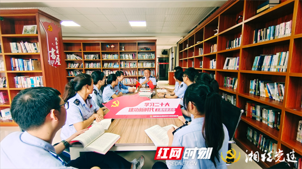 株洲市石峰區稅務局干部在“稅務黨建書屋”學習經典,交流心得。