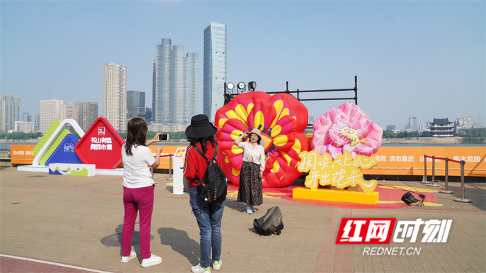 從唐代開始,初秋的湘江兩岸就會盛開一種粉色的花朵,即毛主席詩詞“芙蓉國里盡朝暉”中的“芙蓉”,也稱之為“拒霜花”。市集的入口處,展陳著由湖南省新華書店與先鋒藝術家宋三土聯合打造的“閱讀,讓心靈開出花來”巨型系列藝術裝置。這是宋三土帶著其藝術公益作品“流浪的花朵”走遍中國十余個省份后首次踏足湖南,采集“凌霜而開”的木芙蓉,共創的一朵擁有慧眼的“閱讀之花”,象征著我們翻越書山后能看到更廣袤、更繽紛的世界,也寓意著閱讀可讓我們在面對未知與挑戰時依然可以“臨霜而放”,讓心開出花來。