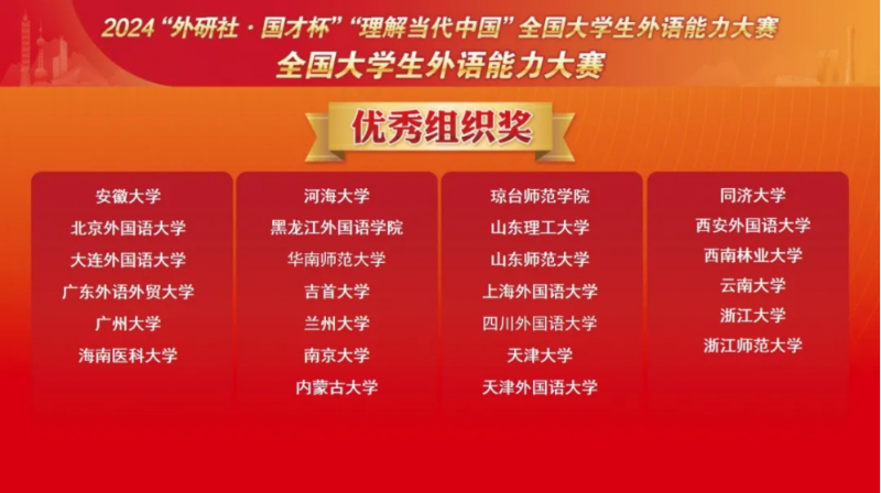 本次大賽還為校賽、省賽組織工作突出,省賽承辦工作突出或國賽成績優秀的高等院校、省級教育行政部門頒發優秀組織獎。