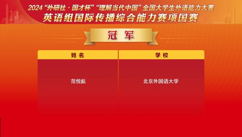 圖為英語組國際傳播綜合能力賽項冠軍。