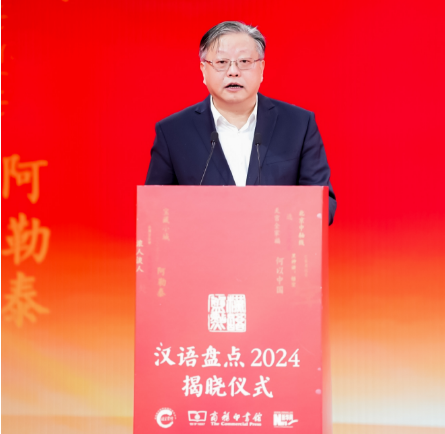商務印書館黨委書記、執行董事顧青在“漢語盤點2024”年度字詞揭曉儀式上致辭。新華網 發