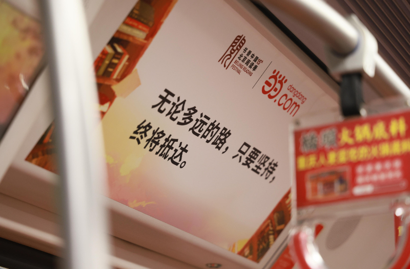 9月15日,“書香北京”主題列車在地鐵1號線八通線上線運營。同時,王府井、東單、國貿等10個核心站點的燈箱同步展示“書香北京”主題畫面。