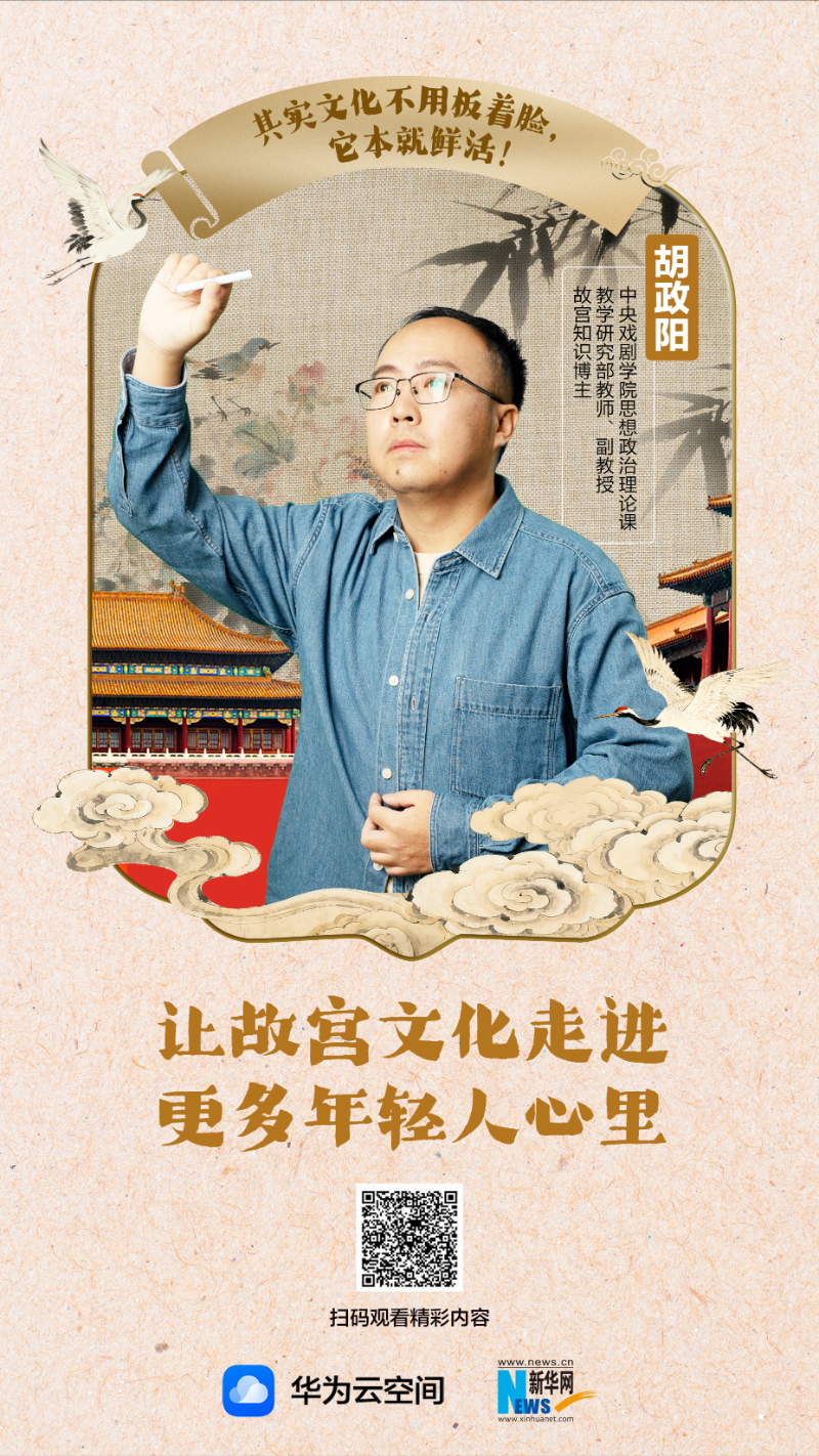 工作后,胡政陽在中央戲劇學院教授大思政課,他將故宮文化與大思政課相結合,線上開設《“戲”說故宮》慕課,線下也帶學生們去故宮上課。他以《甄嬛傳》《如懿傳》為“引子”,拆解影視與史實差異,再深入講解建筑、文物知識內涵,深受學生們喜愛。