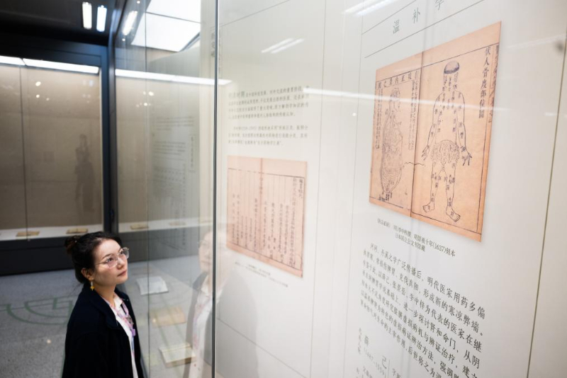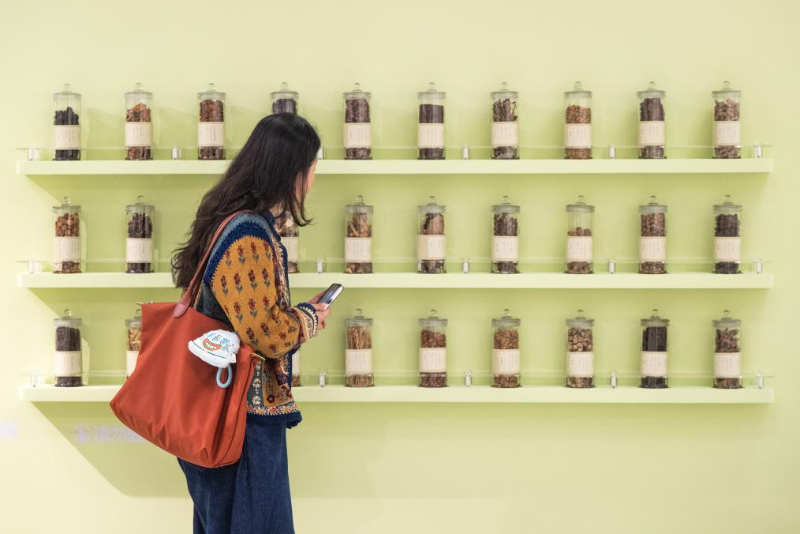 10月28日,參觀者在2025年中華傳統曬書活動暨長江文化典籍閱讀季上觀看展出的中藥標本。