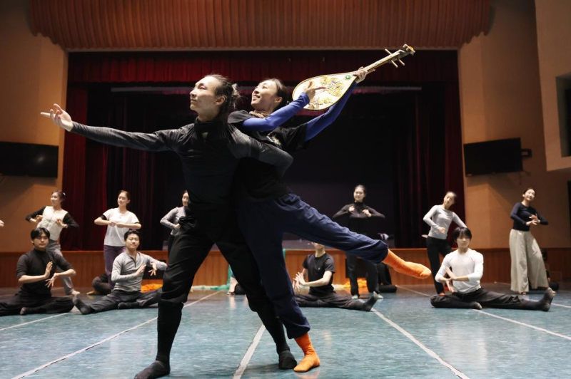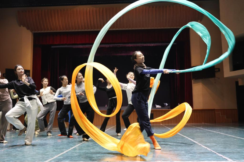甘肅省歌舞劇院舞蹈演員在劇院排練廳排練新版《絲路花雨》(11月3日攝)。