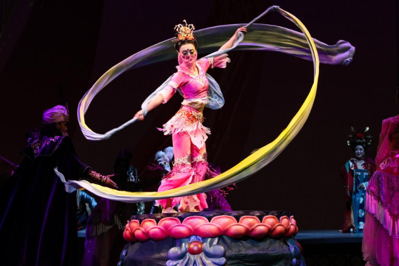演員在美國紐約林肯劇院表演《大夢敦煌》片段(2020年1月9日攝)。