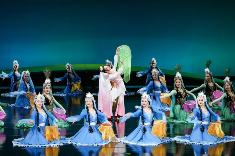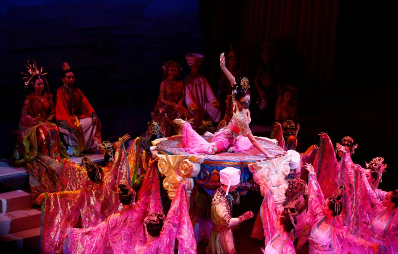 演員在甘肅大劇院表演2025年新版《絲路花雨》(2025年8月28日攝)。