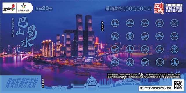 在游戲產品上,除了提供全國體彩在售的絕大多數產品,重慶市還自主研發設計并上市銷售“山水重慶”“巴山蜀水”主題即開型彩票。這兩款特色“即開票”立足于傳播城市形象,為體彩銷售創新注入了文化驅動力。其中,“巴山蜀水”主題即開票作為重慶體彩貫徹落實《成渝地區雙城經濟圈建設規劃綱要》、與四川體彩協同合作的標志性成果之一,是全國首款以“成渝地區雙城經濟圈”為主題的即開型彩票。該票共有6個票面,凸顯川渝兩地極具風情的人文地貌,成為眾多游客打卡魅力巴蜀的全新觸點。