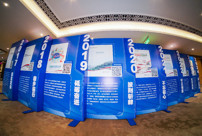 圖為2017年至2024年福建體彩社會責任報告展板