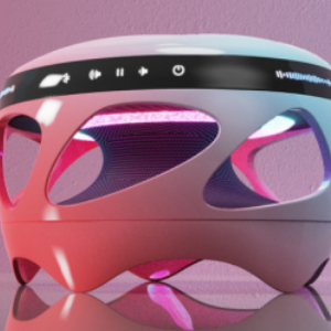 本款“熱浪”主題陶瓷音響設計靈感來源于水,從水滴落激起的波紋到浪花,都在音響上體現。頂部采用水波紋式的漸消面形狀隱喻水滴落的狀態,腰部用了鏤空的旋轉造型,打破傳統形態,讓其造型年輕化,增強運動感,底部波浪的造型則是隱喻水滴已經形成浪花,配合燈光音樂形成強烈的節奏。