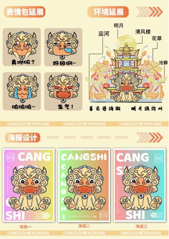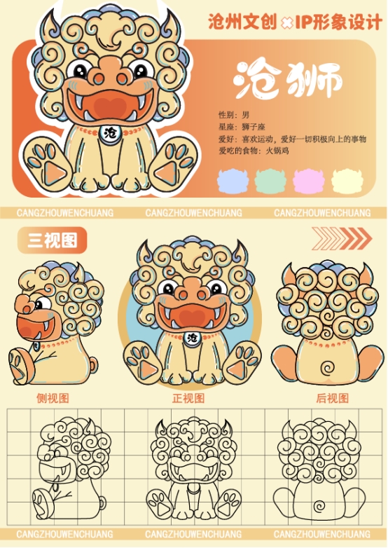 設計滄州鐵獅子的可愛IP形象,保留其獅子的形象特征,如獅子頭、鬃毛、爪子等,同時加入了可愛的元素,如圓潤的眼睛、溫和的表情、小巧的身材等。