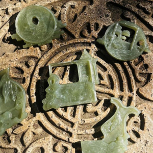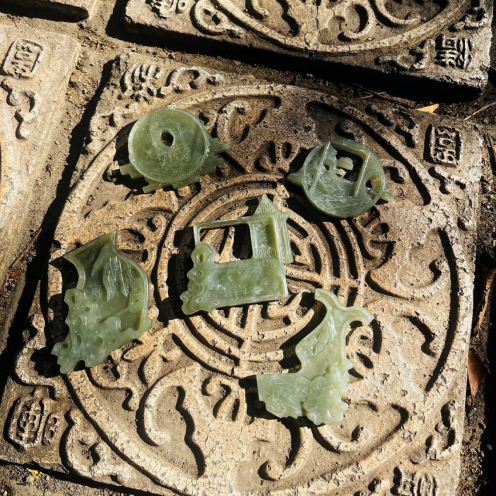 作品靈感來自于廣東清暉園,清暉園作為中國十大名園之一,巧妙利用了門洞、碧水、綠樹、古墻、漏窗、石山、小橋、曲廊等與亭臺樓閣交互融合,集中國古代建筑、園林、雕刻、詩書、灰雕等藝術于一身。在挑選了五處風景將其元素提煉濃縮之后,設計出了,這五款手把件,無論帶上其中哪一個,都仿佛將清暉園的美景隨身攜帶。作品制作材料采用了青海和田玉進行表現,加工工藝上運用了浮雕表現以及鏤空技法。