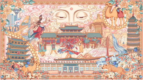作品以“千年華夏·長治久安”為主題。千年的文明,帶著古老美麗的神話色彩,孕育了底蘊深厚的民族文化。以此框架進行展開,描繪了長治代代相傳的民俗活動以及膾炙人口的女媧補天等場景。