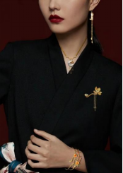 靈感來源于荊楚文化,從屈原《離騷》中的“朝飲木蘭之墜露兮,夕餐秋菊之落英”?!懊诽m竹菊”,不僅象征人們的品格美好高尚,而且以花的品質來抒發文化散發的魅力,將國潮元素和首飾相結合。