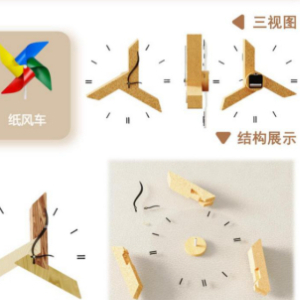 設計靈感來源于敦煌的“三兔共耳”藻井圖案,幾個構圖盡顯數學之美;主體采用榫卯結構相互連接,便于拆裝。造型上富有動感,使人聯想到三只兔子奔跑不止,風車隨風呼呼旋轉,時間流轉不停,世間萬物生生不息。