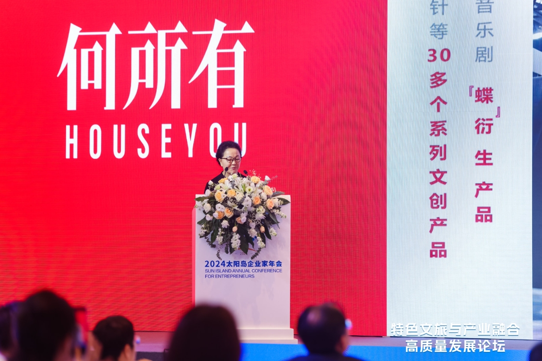 8月23日上午,2024太陽島企業家年會·特色文旅與產業融合高質量發展論壇在哈爾濱市太陽島花園酒店舉行。圖為松雷集團董事長 “何所有”品牌創始人曾慶榮分享特色文旅案例