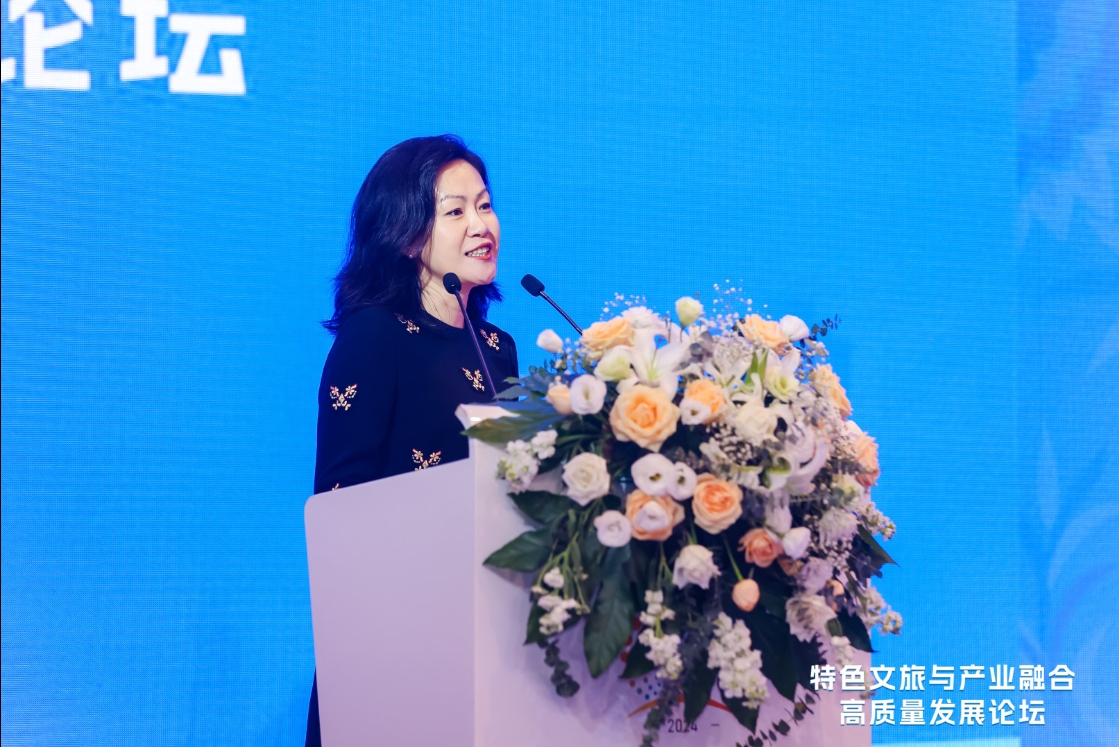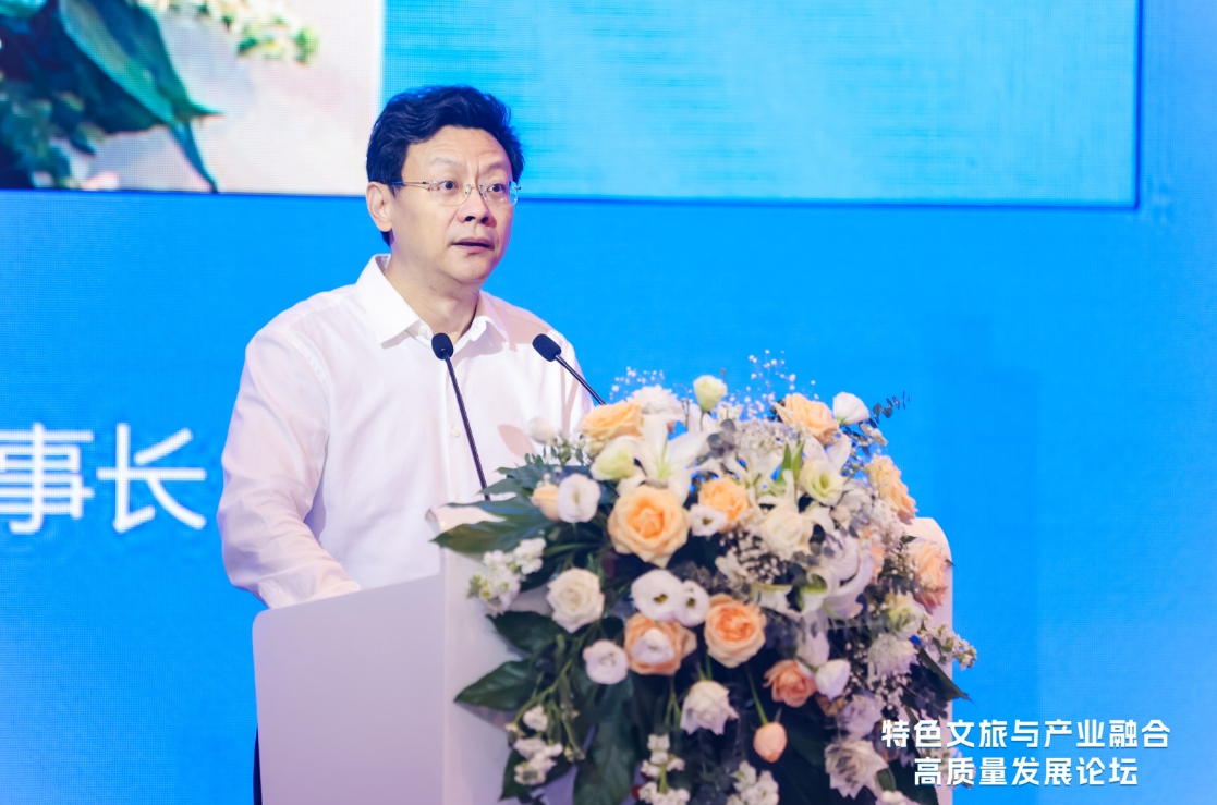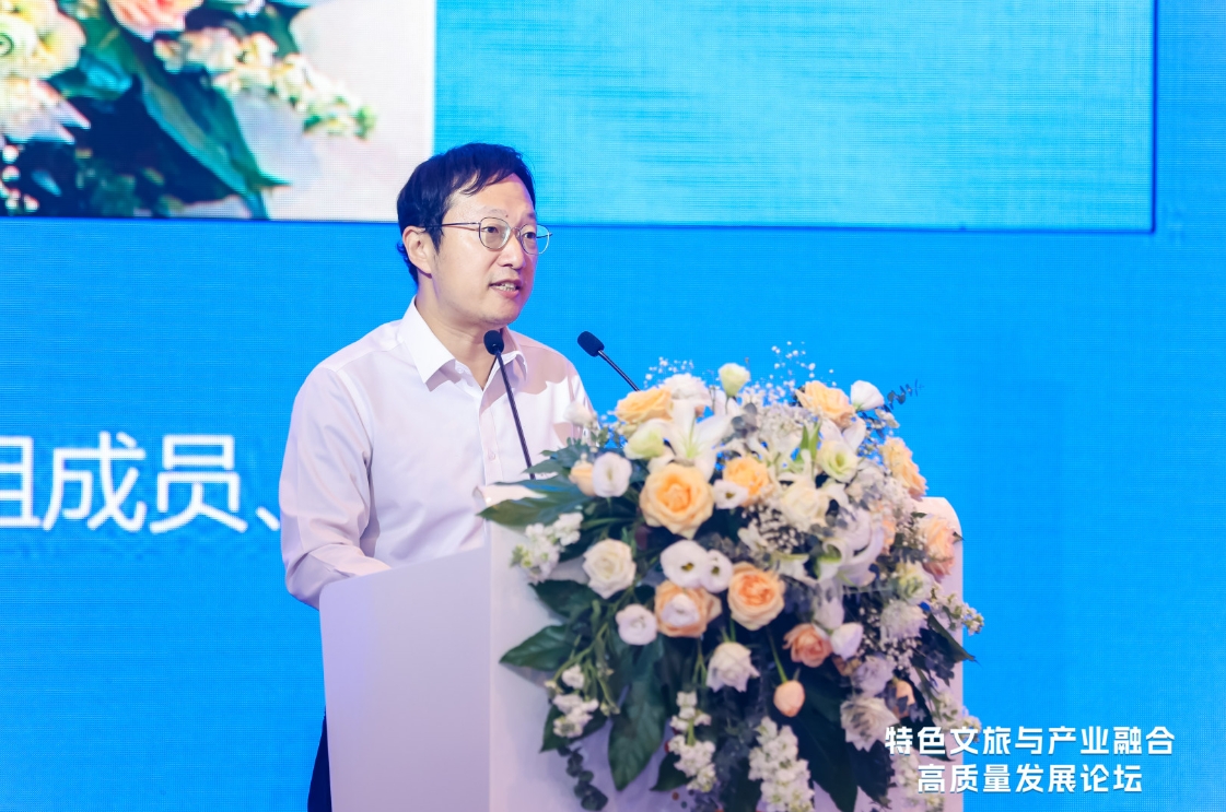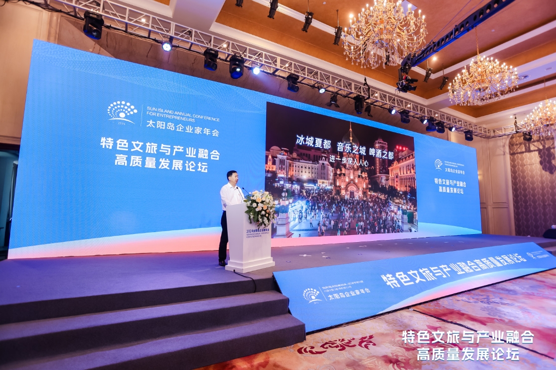 8月23日上午,2024太陽島企業家年會·特色文旅與產業融合高質量發展論壇在哈爾濱市太陽島花園酒店舉行。圖為文化和旅游部產業發展司副司長傅瀚霄致辭