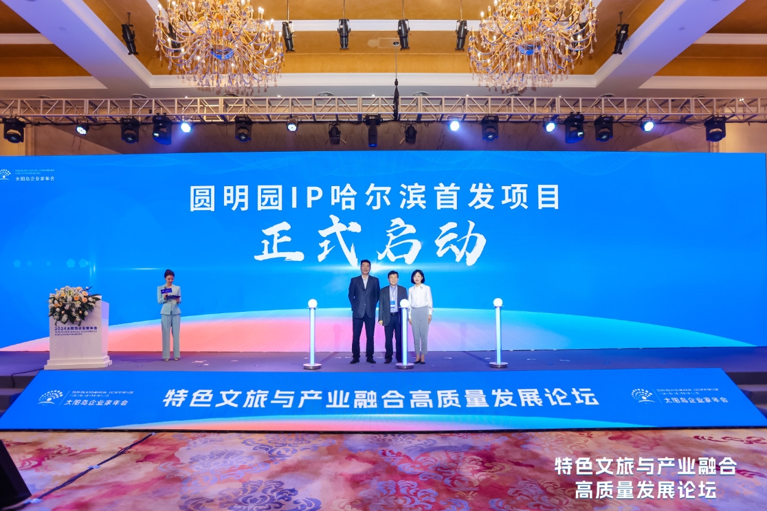 8月23日上午,2024太陽島企業家年會·特色文旅與產業融合高質量發展論壇在哈爾濱市太陽島花園酒店舉行。圖為圓明園IP哈爾濱首發項目啟動儀式