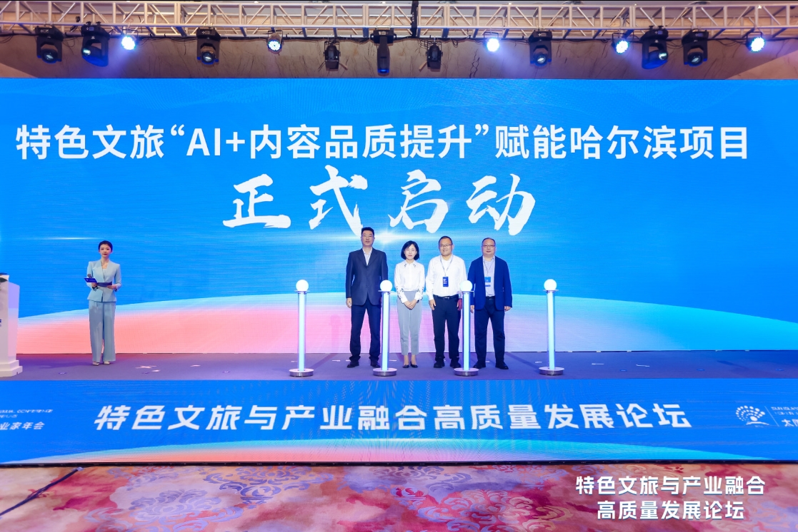 8月23日上午,2024太陽島企業家年會·特色文旅與產業融合高質量發展論壇在哈爾濱市太陽島花園酒店舉行。圖為特色文旅“AI+內容品質提升”賦能哈爾濱項目啟動儀式