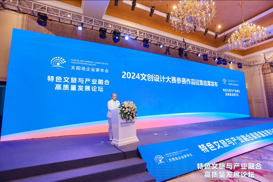 8月23日上午,2024太陽島企業家年會·特色文旅與產業融合高質量發展論壇在哈爾濱市太陽島花園酒店舉行。圖為2024文創設計大賽復選入圍名單公布儀式